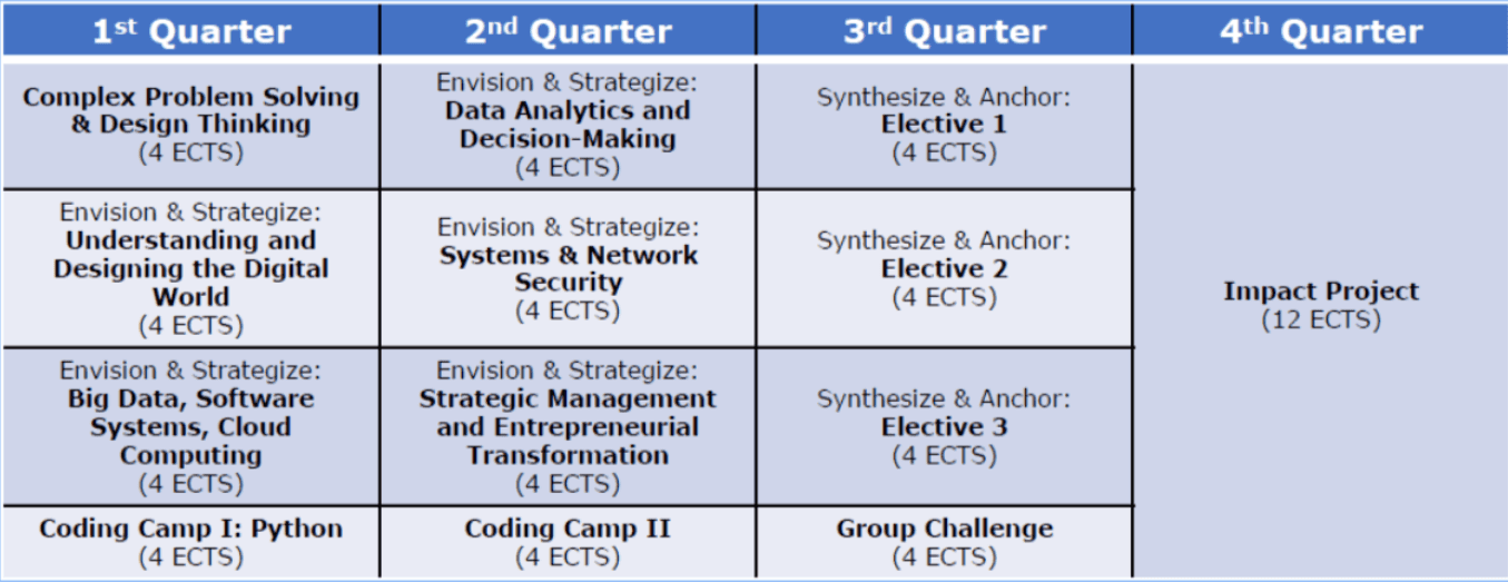- Prepares students for careers in industries that are affected by the digital transformation, including research, development, entrepreneurship and management.